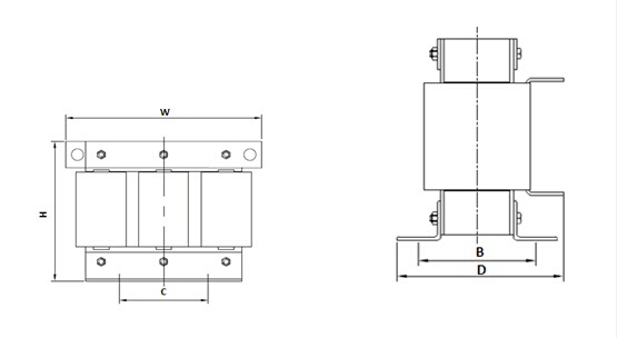 调谐电抗器为铁心式铜或铝绕组结构,通过优化设计及机械绕制工艺能有效降低集肤效应和谐波下的损耗,在真空状态下浇注聚酯树脂浇注环境温度为40℃,干燥温度为155℃。