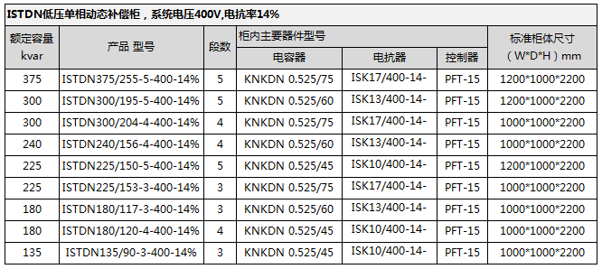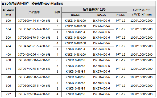 概述:ISTD低压动态补偿柜采用微处理器为控制单元,自动对系统无功进行跟踪采样;根据电网无功功率的变化,运用无触点过零投切技术对并联电容器组进行快速投切,动态、实时补偿无功功率,提高系统功率因数,改善系统三相不平衡。同时通过串接不同电抗率的调谐电抗器与滤波电容器形成特定的谐振频率,抑制系统谐波。