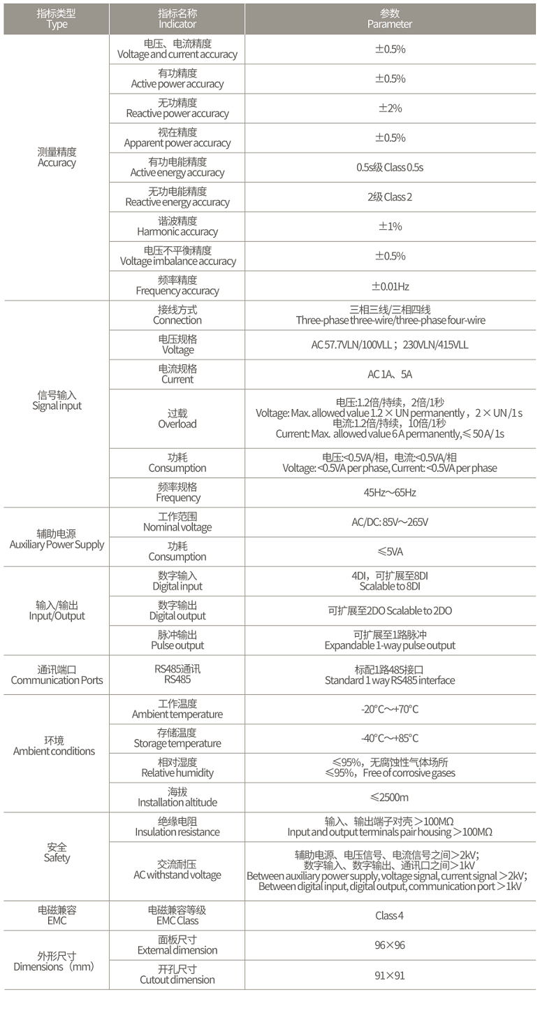 可获取全面的电参量数据,包括系统电压、电流、功率(P、Q、S、PF等)、频率等参数,掌握电力系