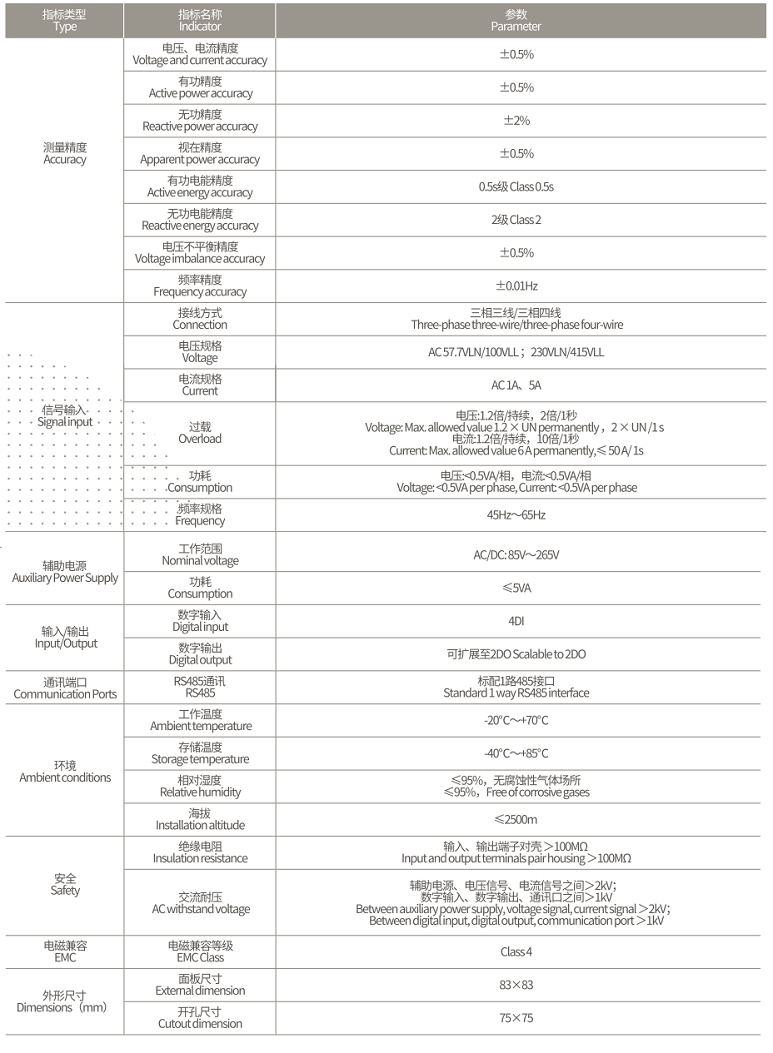 全电量数据测量,包括系统电压、电流、功率(P、Q、S、PF等)、频率等参数。